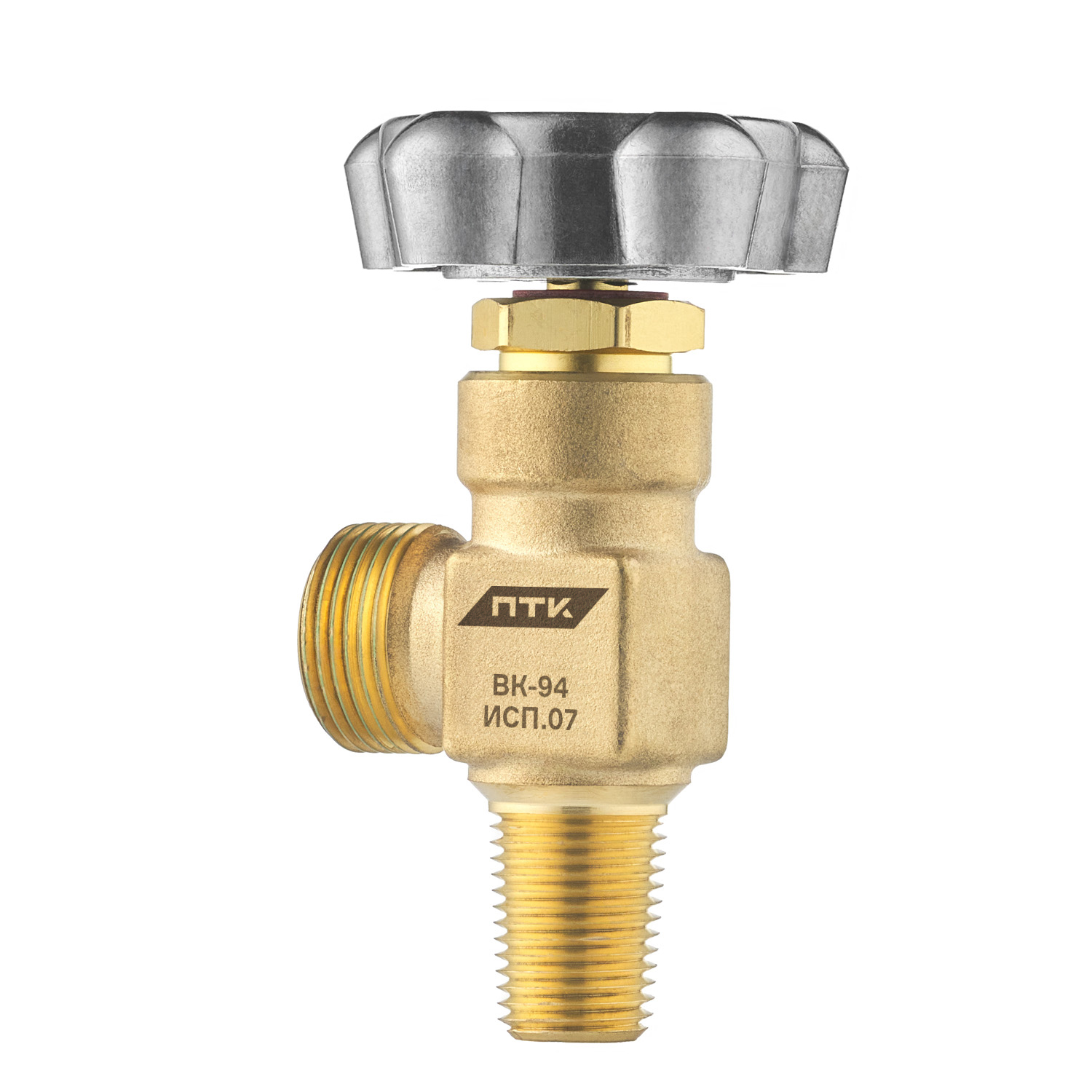 Вентиль баллонный ПТК ВК-94 (исполнение 07) предназначен для установки на кислородные баллоны и служит для предотвращения утечки газа и регулировки подачи кислорода. Вентиль может использоваться также для баллонов со сжатым воздухом, азотом и другими неагрессивными газами. Оптимально подходит для баллонов ёмкостью от 5 до 40 литров с рабочим давлением до 20 МПа (200 кгс/см²).Корпус вентиля изготовлен из латуни, маховик — из алюминия. Присоединительная резьба для установки на баллон - коническая W19,2 по ГОСТ 9909. Резьба шпинделя смазана кислородостойкой смазкой ВНИИНП-283, обеспечивая надежную герметизацию и плавную работу.Гибкая разделительная мембрана предотвращает утечку газа при любом положении вентиля и увеличивает срок его эксплуатации.Комплектация:Вентиль кислородный ВК-94 исп. 07 в сборе – 1 шт.Руководство по эксплуатации – 1 шт.